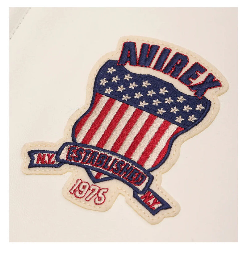 This authentic military-style bomber jacket, crafted from premium 100% European antique lambskin, will elevate your outerwear collection. The front zipper features signature hardware, and the collar, back, and chest are adorned with a distinctive brand logo, perfectly blending traditional craftsmanship with timeless style. The striped ribbed hem, cuffs, and single patch pocket offer both comfort and practicality. An essential bespoke piece for those who appreciate genuine leather quality and classic aviation aesthetics.