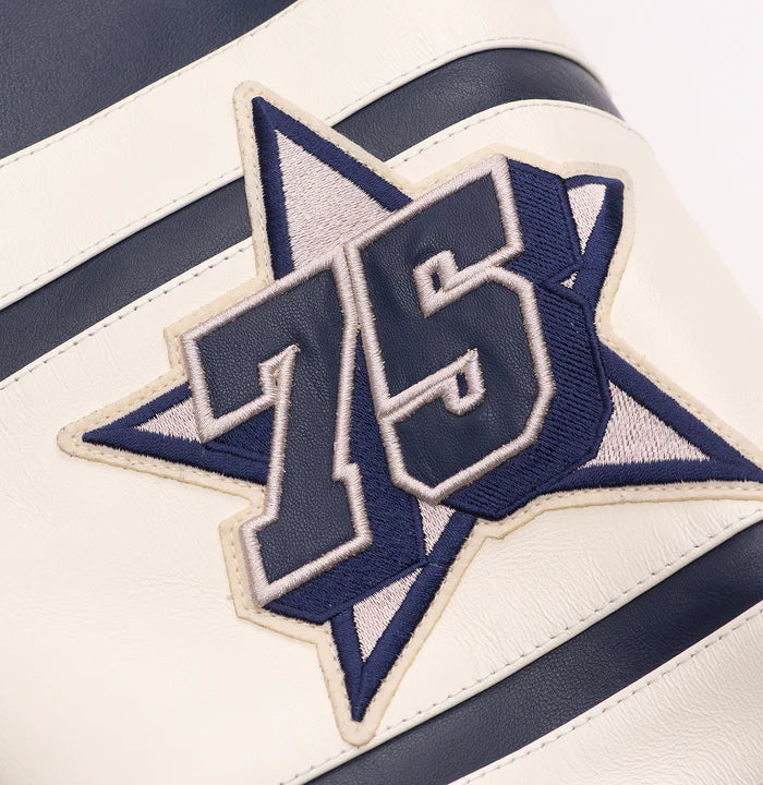 This authentic military-style bomber jacket, crafted from premium 100% European antique lambskin, will elevate your outerwear collection. The front zipper features signature hardware, and the collar, back, and chest are adorned with a distinctive brand logo, perfectly blending traditional craftsmanship with timeless style. The striped ribbed hem, cuffs, and single patch pocket offer both comfort and practicality. An essential bespoke piece for those who appreciate genuine leather quality and classic aviation aesthetics.