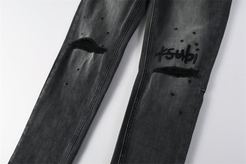 Elevate denim through meticulous craftsmanship and innovative design. Made from premium Italian stretch denim with 92% cotton, 6% elastane, and 2% spandex, they provide exceptional comfort and flexibility. Hand-distressed details and crinkled suede patches enhance their artisanal appeal, complemented by classic five-pocket construction. A specialized treatment creates nuanced tonal and color variations, ensuring each pair possesses a distinct and refined character suited for discerning style connoisseurs.